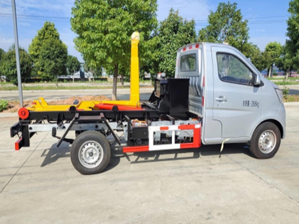 純電動車廂可卸式垃圾車是在純電動二類底盤的基礎上,加裝垃圾箱勾臂、液壓系統,由機械、液壓