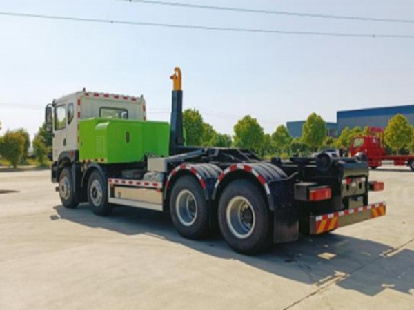 其它 | 隨底盤選裝電池護罩,輪輞,踏板;側面防護裝置材料為鋁合金,與底盤縱梁采用焊接連接;后下部防護裝置材料為Q235,與車架螺栓連接,截面尺寸:120×60mm,離地高度為445mm;動力蓄電池種類:磷酸鐵鋰蓄電池,生產企業:寧德時代新能源科技股份有限公司;驅動電機類型:永磁同步電機,驅動電機功率:360kW,生產企業:陜西法士特齒輪有限責任公司;ABS型號:CM4XL-4S/4M;ABS生產企業:廣州瑞立科密汽車電子股份有限公司;該車安裝具有衛星定位功能的行駛記錄儀;專用功能及裝置:液壓缸、拉臂鉤等專用設備,實現對垃圾的裝載及卸料的作業功能.可選裝ETC車載裝置.長度(mm)/后懸(mm)/離去角(度)對應關系:9600/1590/20,9450/1440/21,9300/1290/22,整備質量(kg)/額定載質量(kg)對應關系:14150/17720(2人),17655(3人),14450/17420(2人),17355(3人),14850/17020(2人),16955(3人) | ||