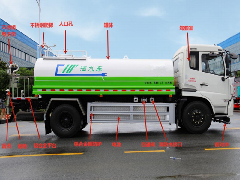 其它 | 1、罐體總容量:4.18立方米,有效容積:3.99立方米,運輸介質: 水,介質密度:1000千克/立方米,罐體外形尺寸(長×長軸×短軸(mm)): 3288×1650×1000;2、側防護及后下部防護裝置均采用Q235碳鋼,均采用螺栓連接,后下部防護斷面尺寸:120×50(mm),離地面高度410mm。3、.ABS型號:CM4XL-4S/4M;ABS生產廠家:廣州瑞立科密汽車電子股份有限公司。4、專用裝置:罐體,灑水系統,主要用于園林綠化灑水及路面灑水,選裝后部霧炮,高度為2800mm。5、儲能裝置種類/生產企業:磷酸鐵鋰蓄電池/寧德時代新能源科技股份有限公司;6、電機的額定/峰值功率分別為:60kW/120kW,隨底盤選裝駕駛室外觀 | ||
