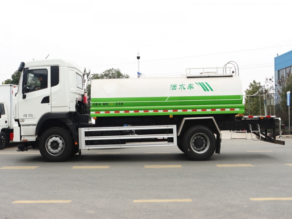 其它 | 隨底盤選裝鋁制輪輞、黑底LOGO;側面防護裝置材料為鋁合金100,與車輛采用螺栓連接;后防護尺寸(mm):2350x60x120x5,離地高度420mm;采用Q345A材料,螺栓連接。動力蓄電池種類:磷酸鐵鋰蓄電池,生產企業:深圳市比亞迪鋰電池有限公司(單體),汕尾比亞迪汽車有限公司(總成);驅動電機類型:永磁同步電動機,額定功率150kW,峰值功率180kW,生產企業:長沙市比亞迪汽車有限公司;ABS系統生產企業:威伯科汽車控制系統(中國)有限公司,ABS系統型號:ABS-E;電池布置位置:車輛底部;罐體總容量:8.736立方米,有效容積:8.32立方米,罐體外形尺寸(長×長軸×短軸(mm)):4800×2100×1250,專用裝置:罐體和噴灑系統,主要用于園林綠化及路面灑水。選裝配件位置及后部指示燈具 | ||