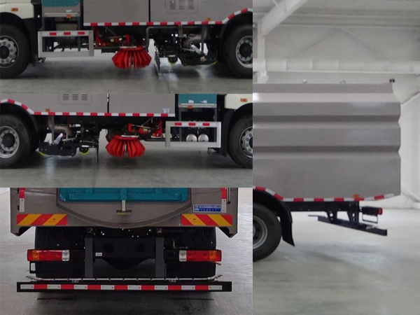 1. 專用裝置:垃圾箱體,裝有吸盤、掃盤、水箱等裝置,為城市道路洗掃專用車;2.側防護防護裝置采用鋁合金材質,后下部防護裝置采用Q235材質;側,后下部防護均采用螺栓連接,后防護尺寸(高×寬):120×60(mm),離地面高度420mm; 3.儲能裝置單體種類/生產企業: 磷酸鐵鋰電池/寧德時代新能源科技股份有限公司;儲能裝置總成的生產企業:寧德時代新能源科技股份有限公司;驅動電機型號TZ370XS-LKM1101對應電機控制器型號KTZ54X45S-LKC1101,功率:160(KW);驅動電機型號TZ366XS50EA對應電機控制器型號KTZ54X40SP5S;功率:180(KW); 4.ABS系統生產廠家/型號 :1.長春科密汽車制動有限公司/CM4XL.2.WABCO/44600XXXX0;5.長度(mm)/軸距(mm)對應關系:9500/5600,9200/5300