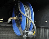(15) 側(cè)后部裝有機(jī)械式自動(dòng)卷繞沖洗卷盤(pán),配 20m 高壓軟管和不同角度的清洗槍?zhuān)捎糜谇逑窜?chē)身和其它設(shè)備和設(shè)施。