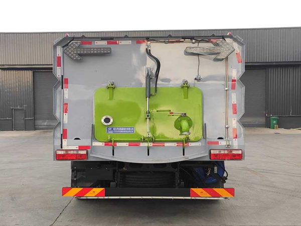 (1) 清水箱充分利用了車載空間,容積大,可達(dá)4m3。垃圾箱采用單層304不銹鋼結(jié)構(gòu),傾翻卸料,帶高壓自潔裝置。自潔裝置可在垃圾箱卸料時(shí)幫助卸料,清洗垃圾箱內(nèi)部。 。