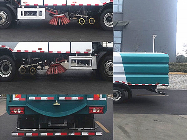 12、左右立掃為單掃盤,減少了掃刷的數量和掃刷消耗量,能降低使用成本。掃刷上加裝噴水裝置,用于噴霧降塵。左右立掃分開控制,可實現右掃和全掃等不同的作業模式。