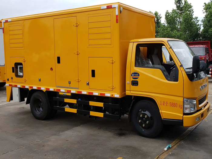 電源車是由汽車底盤、柴油發電機組、輸配電及操控系統、高效隔音吸聲降噪 箱體、進排風降噪系統、排氣消聲系統、照明系統、液壓支撐系統、線纜絞盤及工具器材艙等組成。其改裝與系統集成要完成的主要任務是將汽車與所搭載的設備有機的結合、充分利用汽車有限的空間實現科學合理的布局、設各的優 化選型及合理搭配等,并**解決好車輛改裝后的安全性及穩定性、系統設備、工作的可靠性及良好的操控性、系統的減震降噪及通風散熱、設各的可維護性等問題,使終產品符合用戶實戰使用的需求。